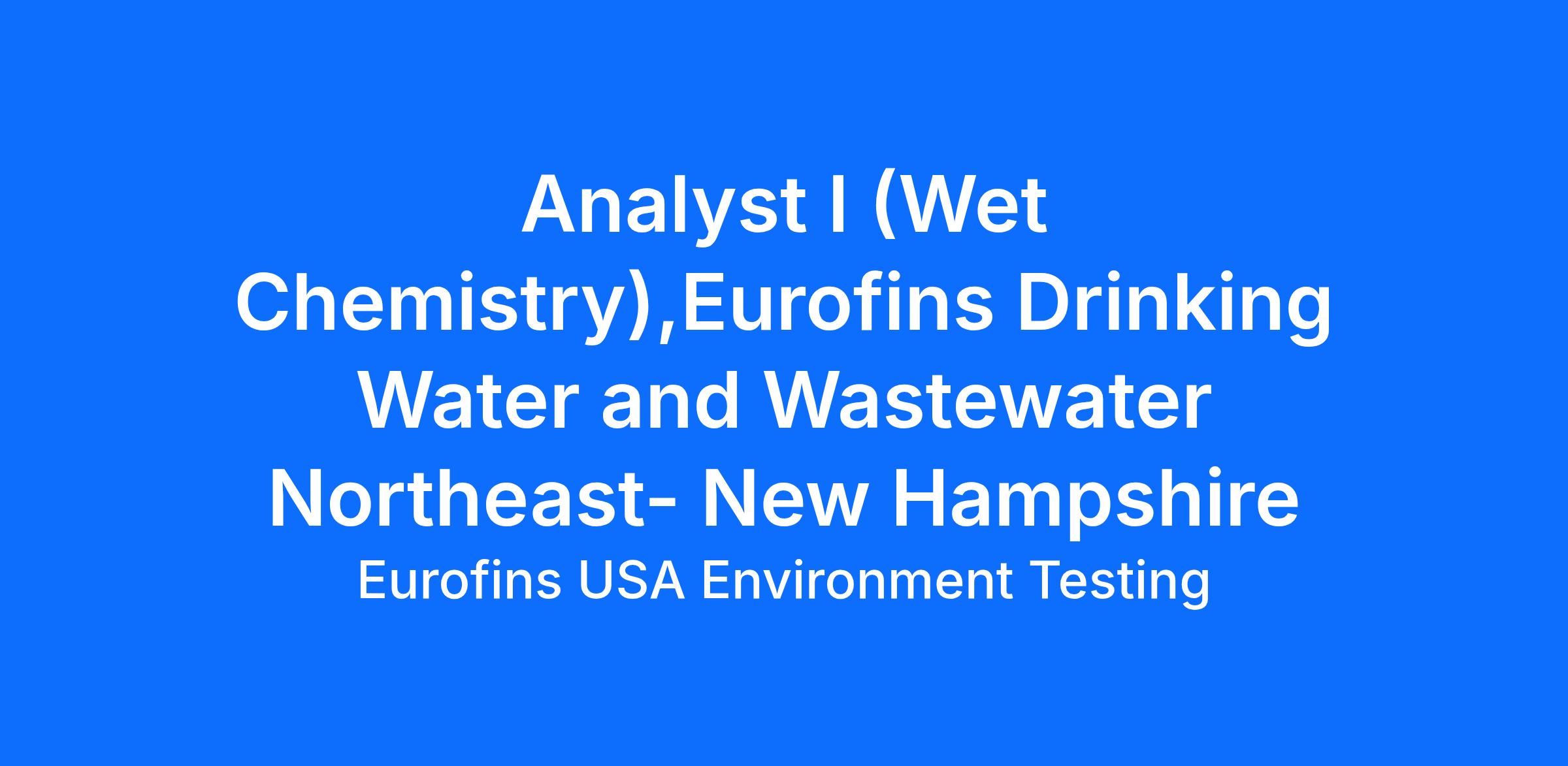 Eurofins Drinking Water and Wastewater Northeast is seeking an Analyst I. The Analyst l position prepares and analyzes drinking water samples using standard analytical techniques according to scientific and environmental protection methodology in compliance with Eurofins Environment Testing Quality Assurance programs and standard operating procedures.