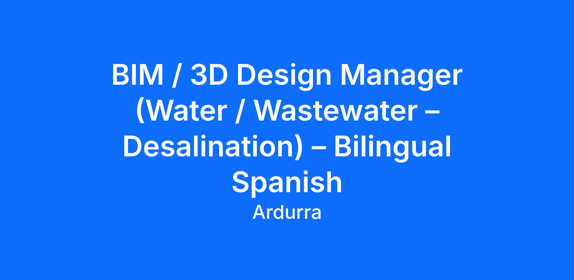 BIM / 3D Design Manager (Water / Wastewater – Desalination) – Bilingual Spanish