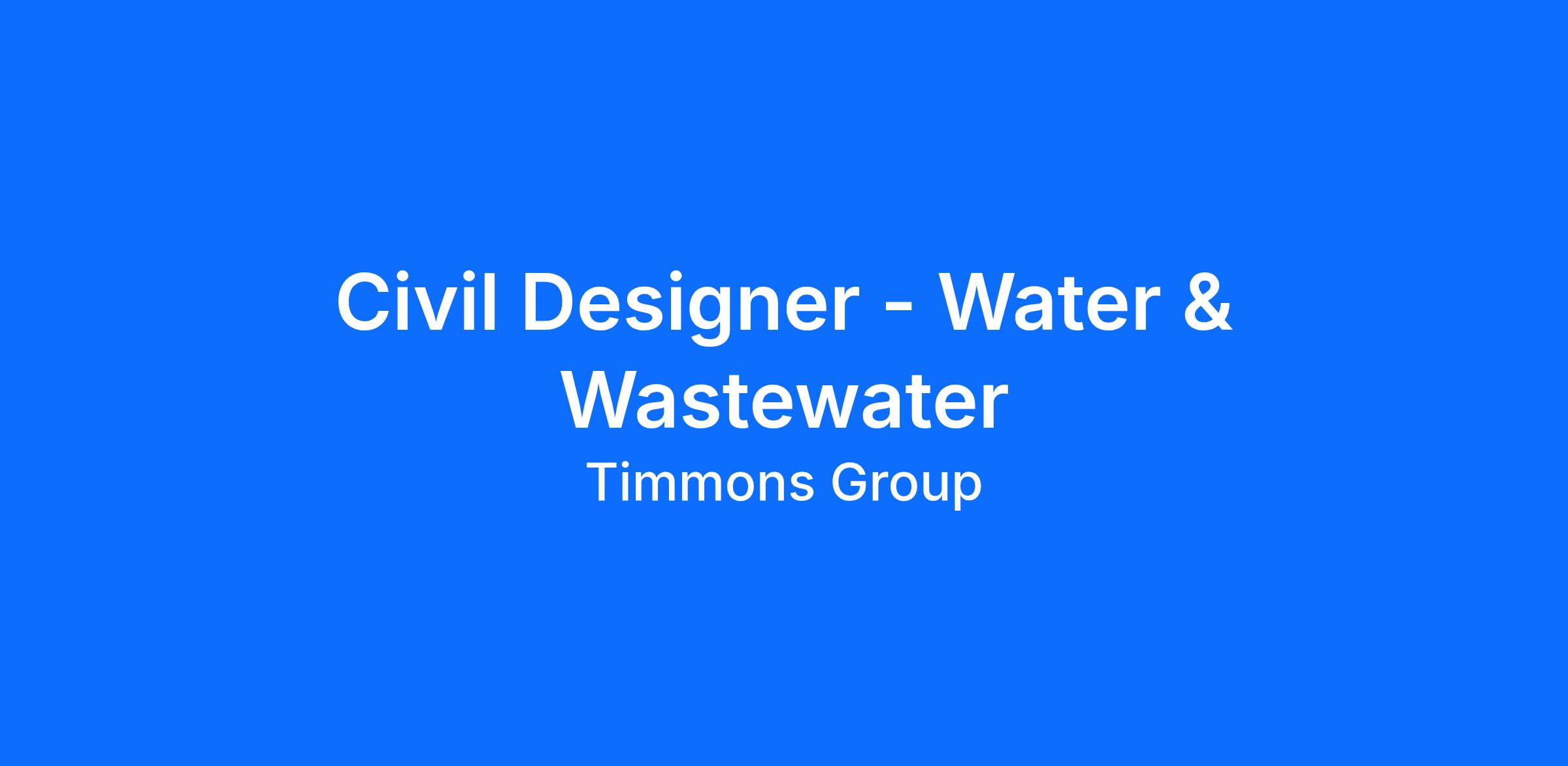 Timmons Group is seeking a talented Civil Designer to join our dynamic Water/Wastewater Group in our Virginia Beach, VA office. The qualified individual will perform civil site design tasks for a variety of water/wastewater infrastructure projects. The complexity and fast-paced nature of our client’s needs create a dynamic environment for our team members, fostering a culture of teamwork, diverse training opportunities, and a sense of ownership in the successful outcome of the project.
