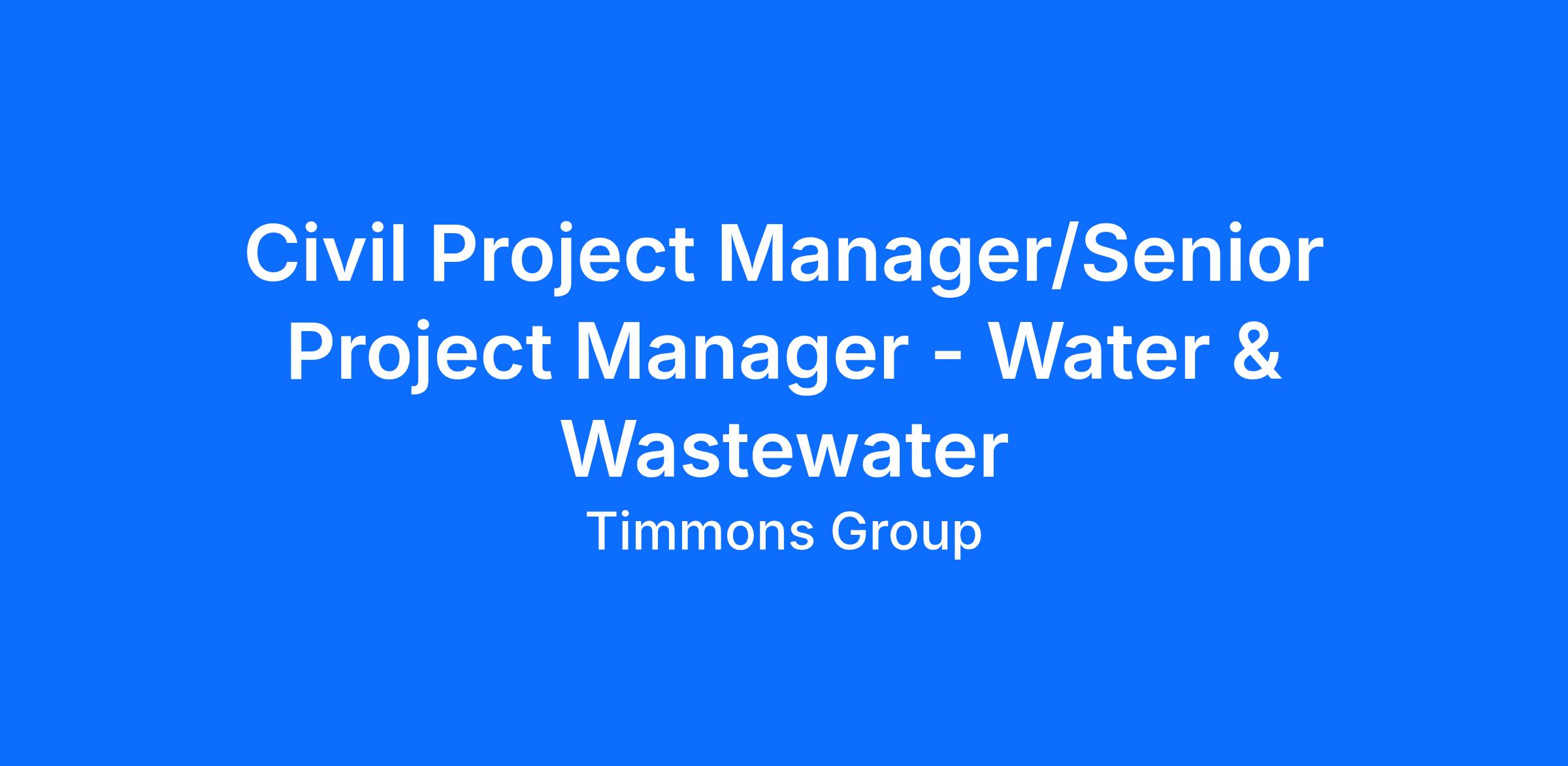 Timmons Group is currently seeking a Civil Project Manager/Senior Project Manager - Water & Wastewater candidate to join our Water & Wastewater Group located in our Staunton, Virginia office location.