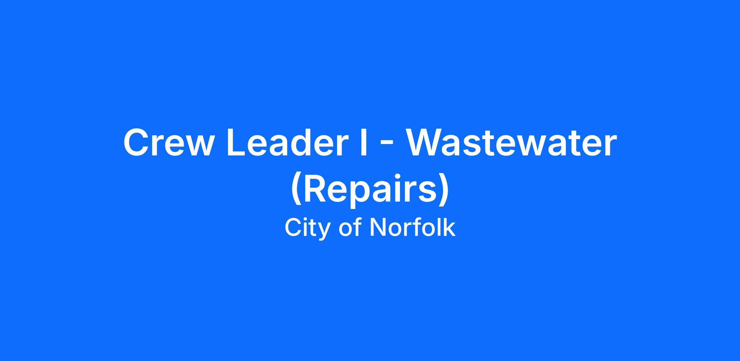 The Department of Utilities is seeking qualified candidates for a Crew Leader I in our Wastewater Division. This person will be responsible for leading a crew of maintenance workers, equipment operators, and other employees participating in the construction, maintenance, and repair of the wastewater system. The Crew leader I will also investigate and resolve complaints, and generate the necessary maintenance reports for efficiency planning.