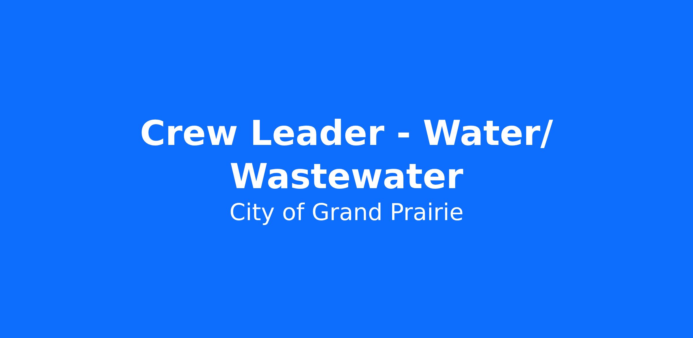 We are looking for Wastewater Crew Leader in Water Utilities to join our team!
