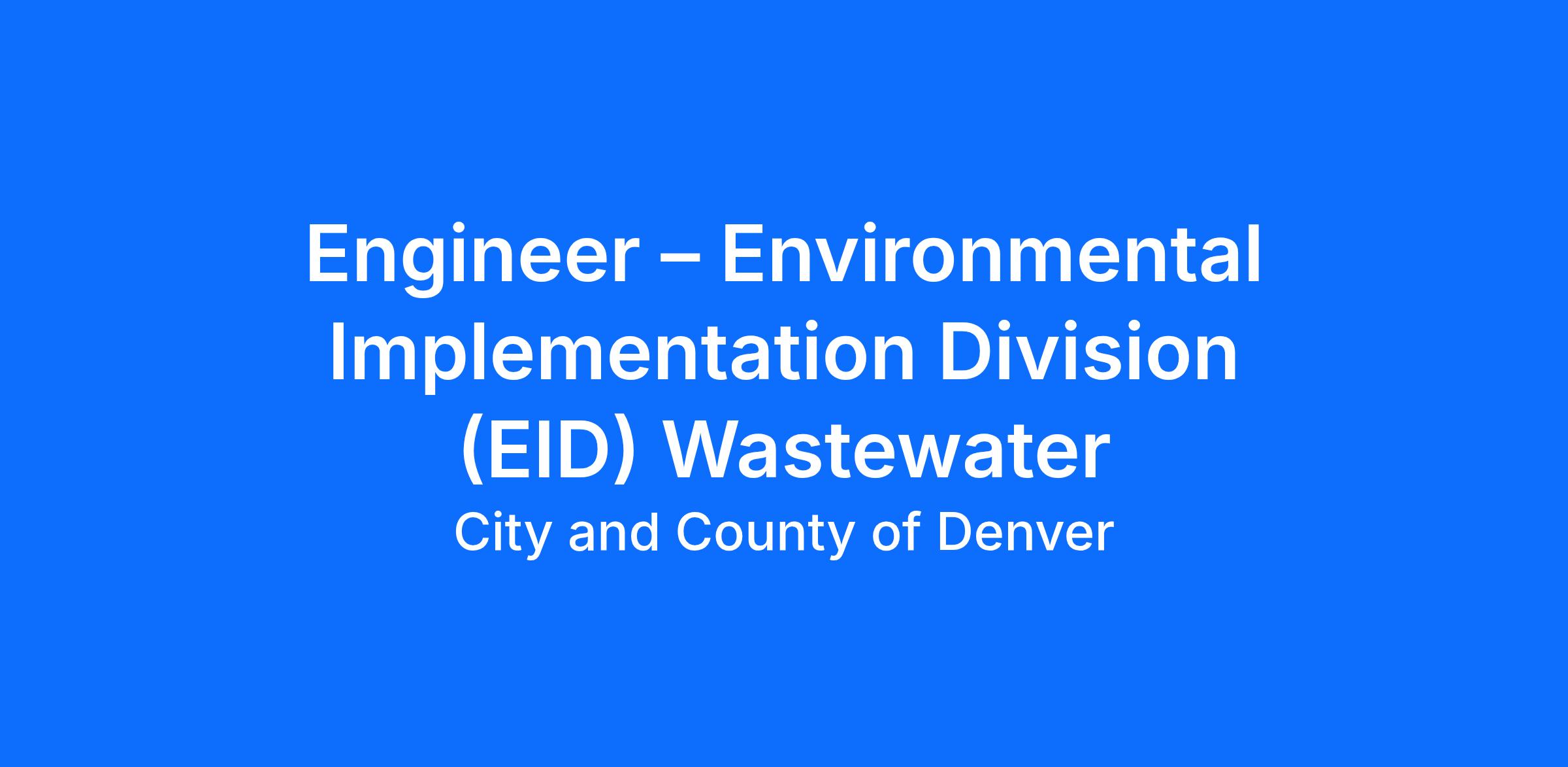 The EID-WW design team has an immediate opening for an Engineer.
