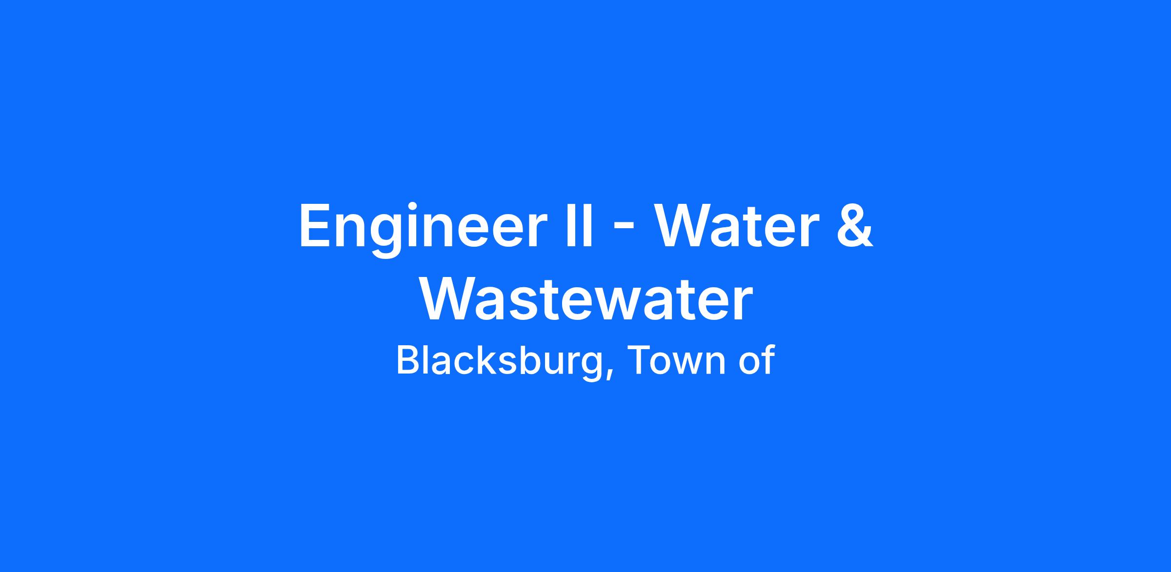 The Town of Blacksburg’s Department of Engineering & GIS is seeking a community and team-oriented Engineer to provide leadership and technical expertise to assist with the planning, design, operation, and maintenance of the town’s water and wastewater infrastructure. This individual will work collaboratively with Public Works staff to ensure safe, reliable, and efficient delivery of potable water and effective collection and conveyance of wastewater, in compliance with all applicable regulations and environmental standards.