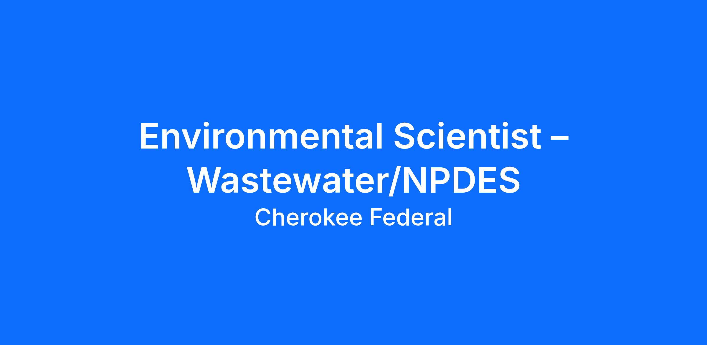 DescriptionEnvironmental Scientist – Wastewater/NPDES