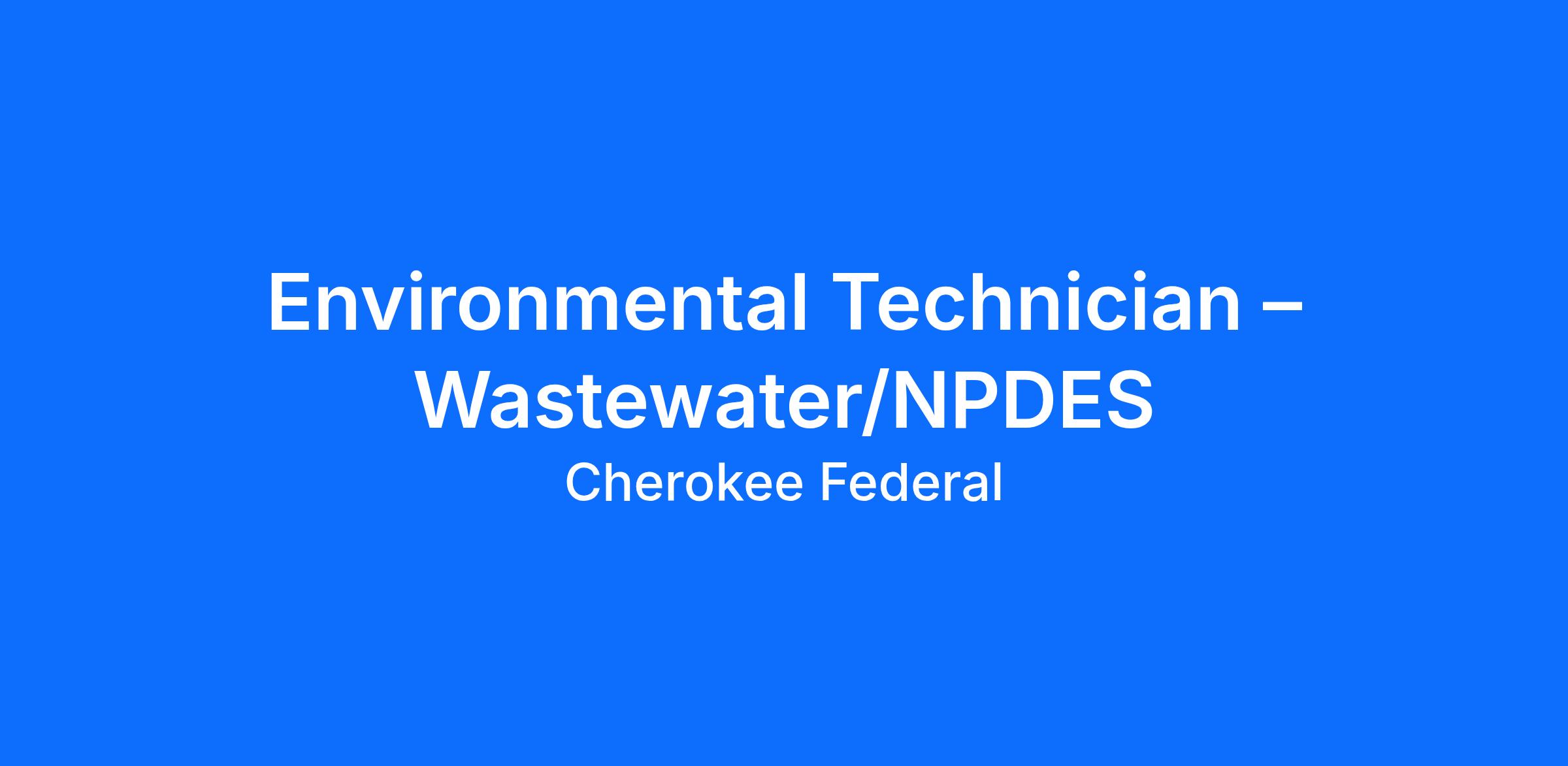 DescriptionEnvironmental Technician – Wastewater/NPDES