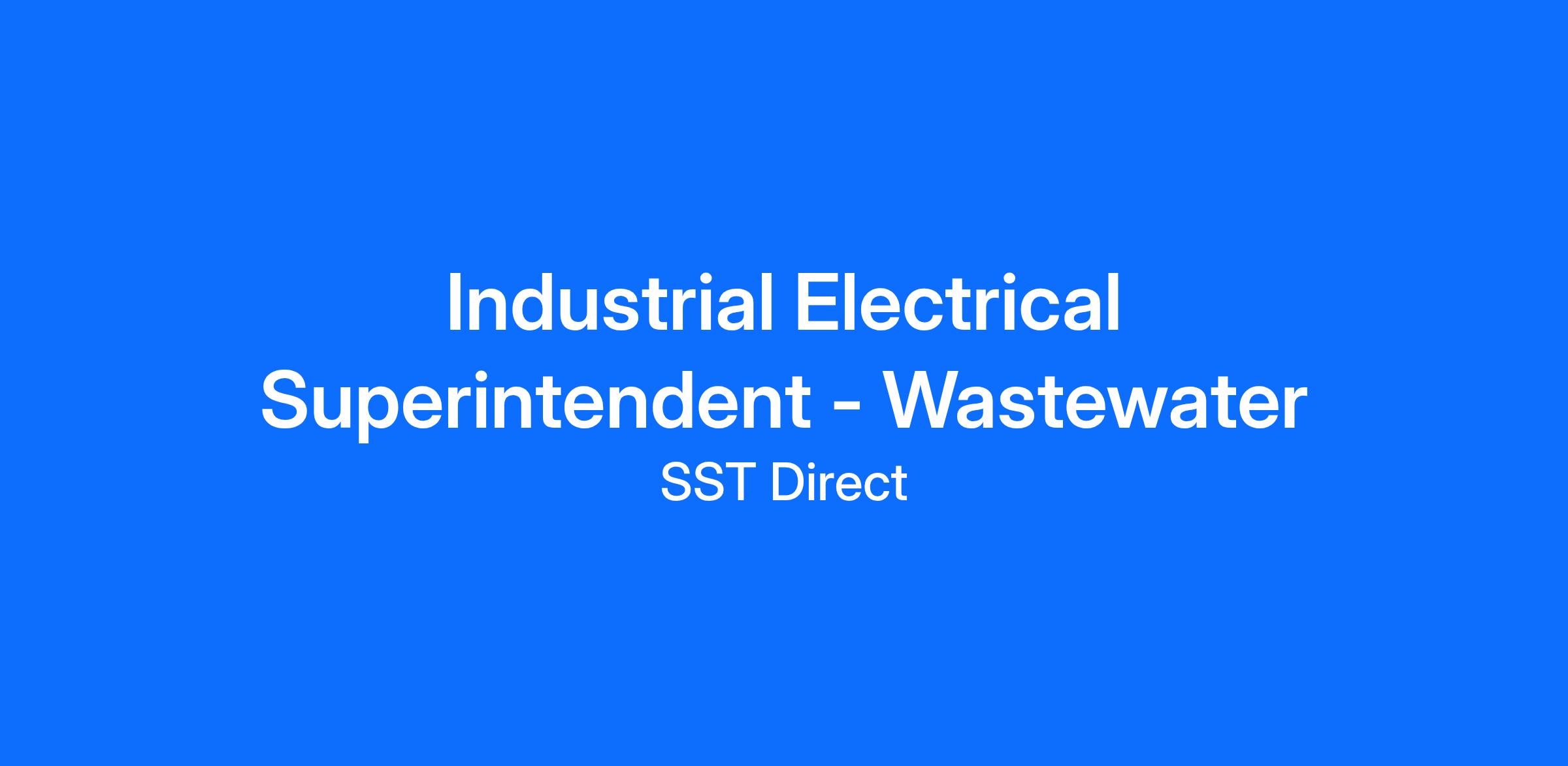 Seeking experienced Industrial Electrical Superintendents with wastewater treatment plant experience in Port St. Lucie, FL.
