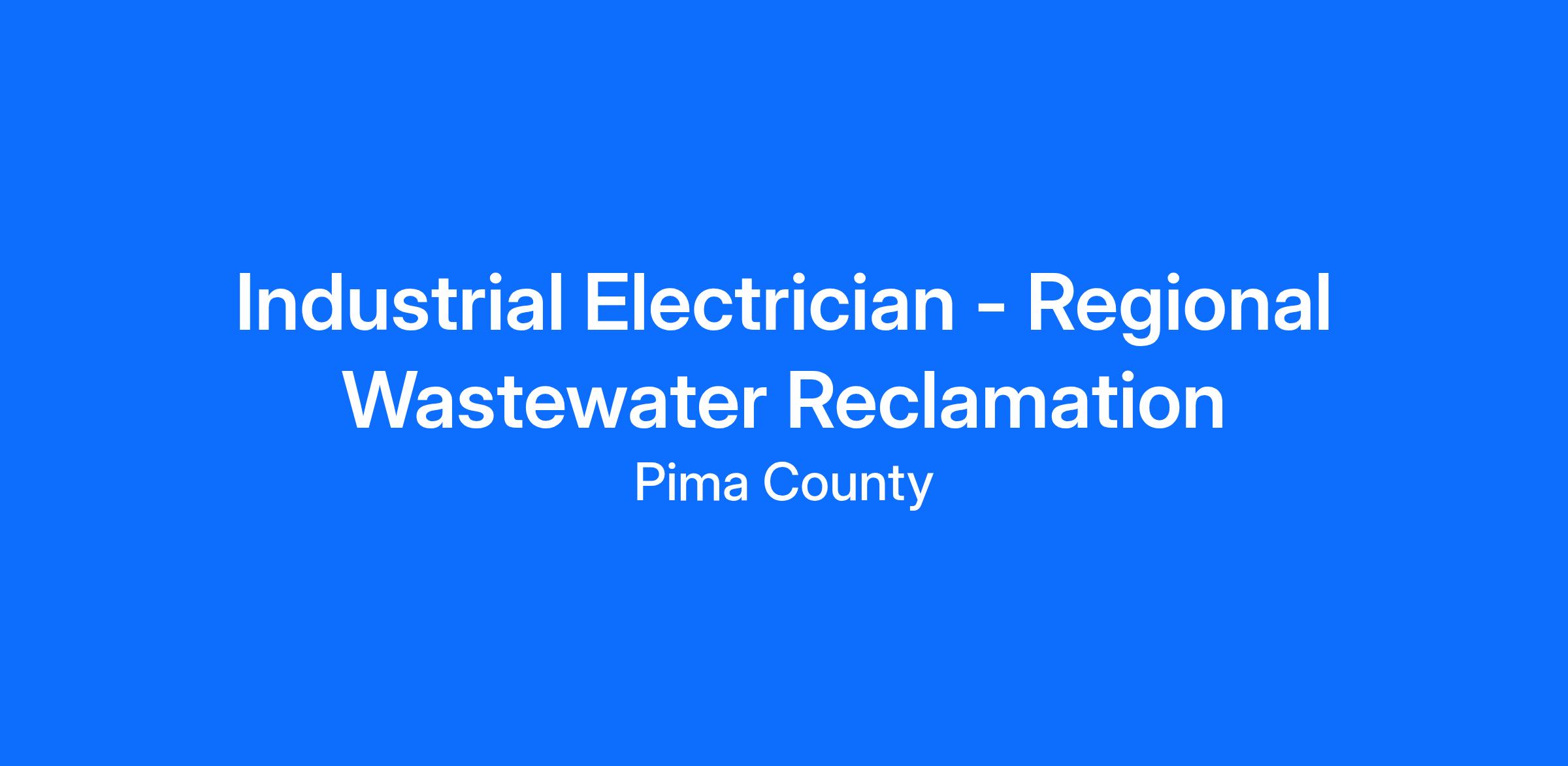 Are you an experienced Industrial Electrician seeking a challenging role in an essential public infrastructure environment? Join Pima County’s Regional Wastewater Reclamation Department (RWRD), where you will apply journeyman-level expertise in industrial electrical maintenance, troubleshooting, construction, and preventive maintenance to support essential wastewater treatment operations.