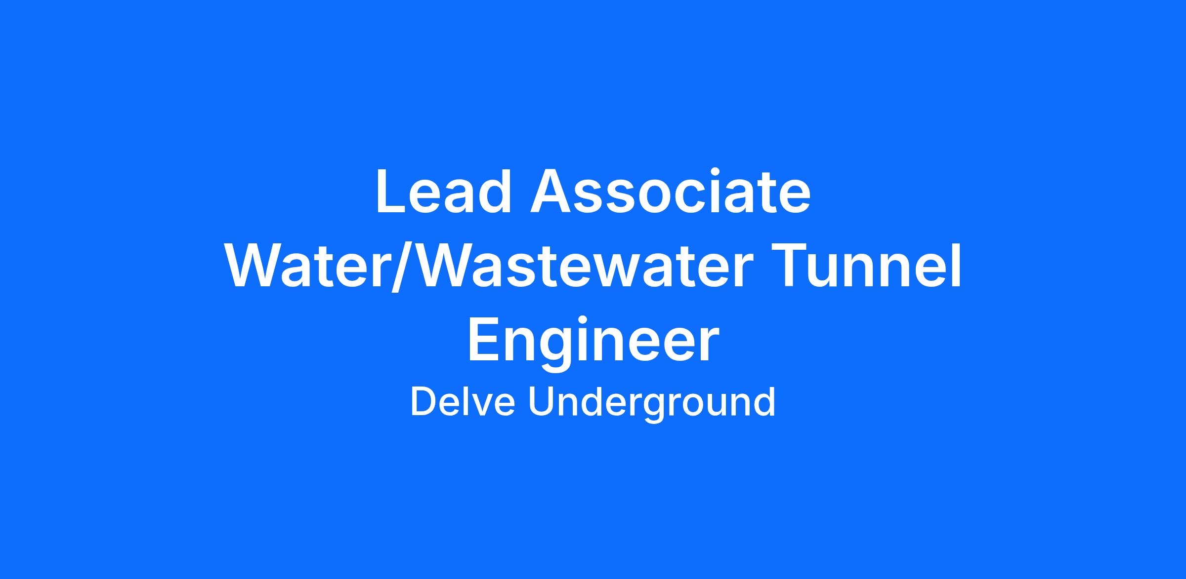 Delve Underground has an immediate opening for a Lead Associate Water/Wastewater Tunnel Engineer with a minimum of 15 years of relevant experience to join our Boston team delivering tunnels, underground facilities, and water/wastewater infrastructure projects. The candidate will have experience in business development with background in water/wastewater underground infrastructure design and construction.