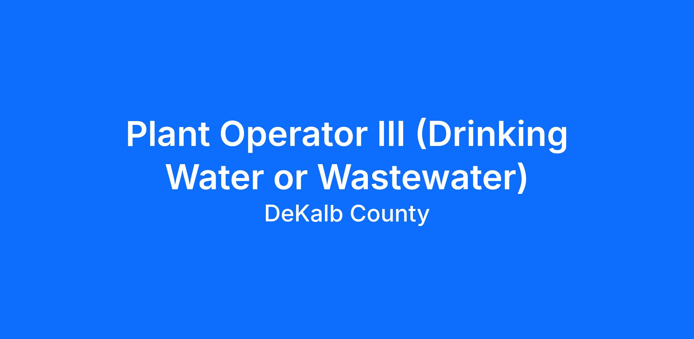 Specific License or Certification Required: Must possess and maintain a valid driver’s license; must possess and maintain a valid State of Georgia Class III Water or Wastewater Operator License.