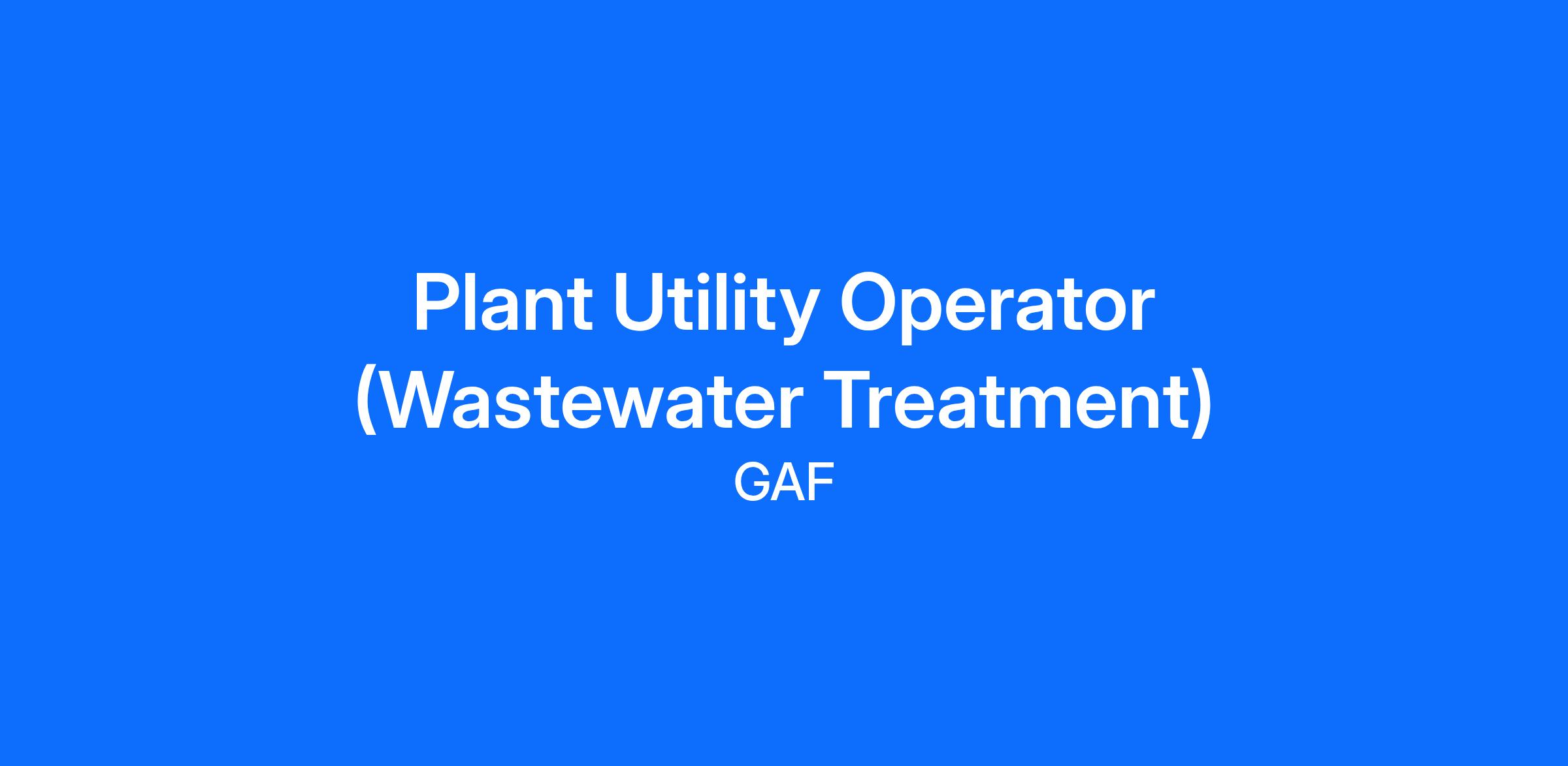 - Formal education or 1 to 3 years work experience in wastewater treatment.