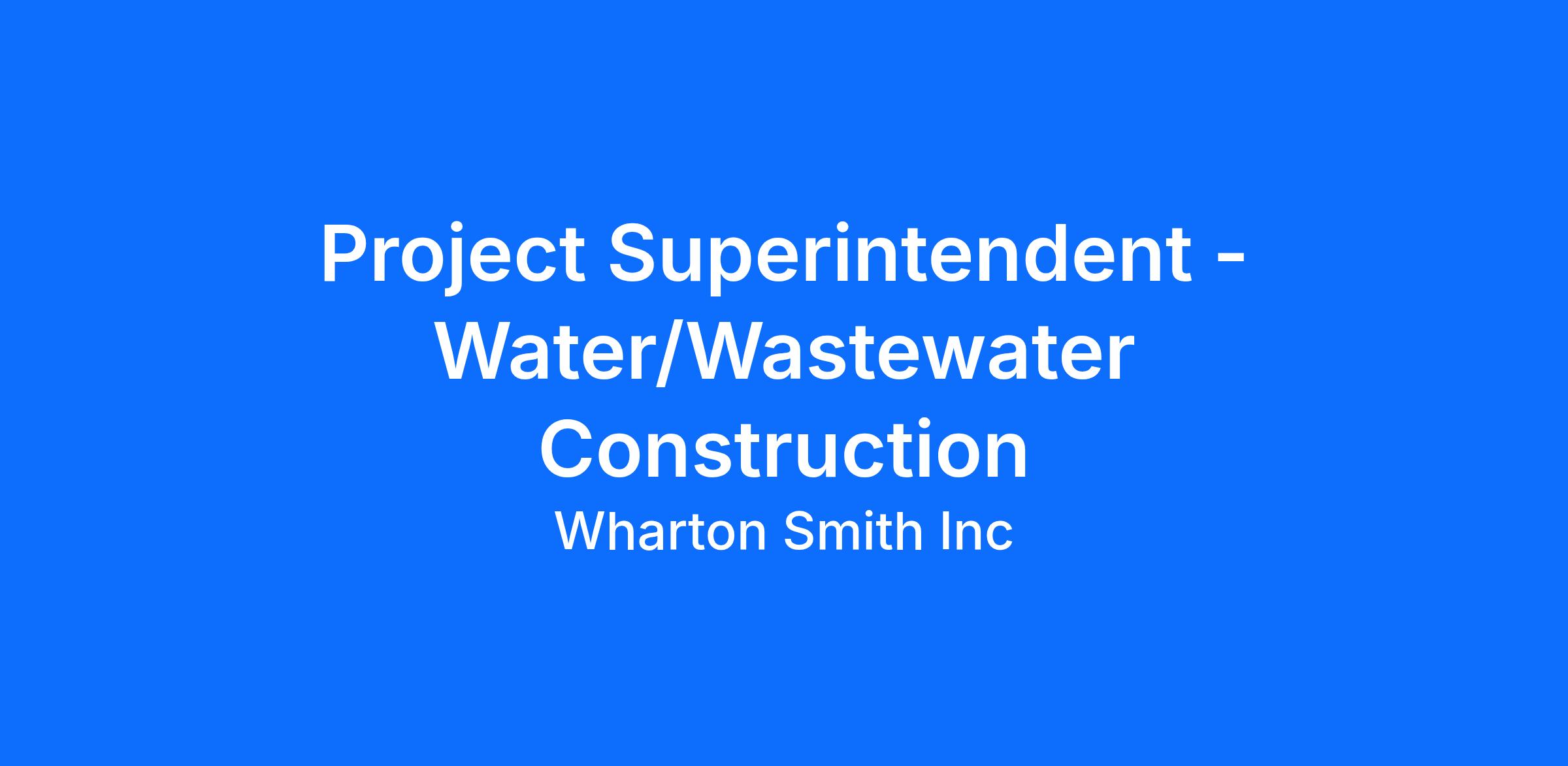 Wharton-Smith, Inc. is currently seeking an experienced Project Superintendent with Water background for the Treasure Coast region between Palm Bay and Port St. Lucie, FL area. In this role, the successful candidate will be responsible for the direction and daily supervision of all jobsite field personnel on assigned water and wastewater treatment plant and line work construction projects.