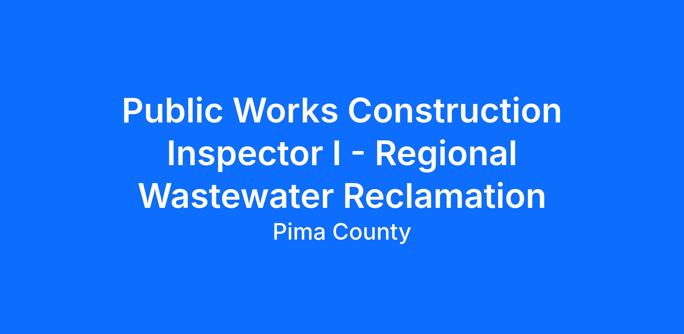Regional Wastewater Reclamation is seeking a detail oriented, experienced professional to help ensure the quality, safety, and compliance of our public sanitary sewer projects as a Public Works Construction Inspector I. In this role, you'll play a vital role in monitoring construction activities, verifying adherence to plans and specifications, and collaborating with contractors, engineers, and project managers to deliver projects that serve our community for years to come. This position, conducts inspections of new work and/or repairs to Public Works Construction Projects to ensure compliance with Pima County standards and specifications and approved project plans and specifications. If you're passionate about building safe, reliable, and lasting public works, we'd like to have you on our team.