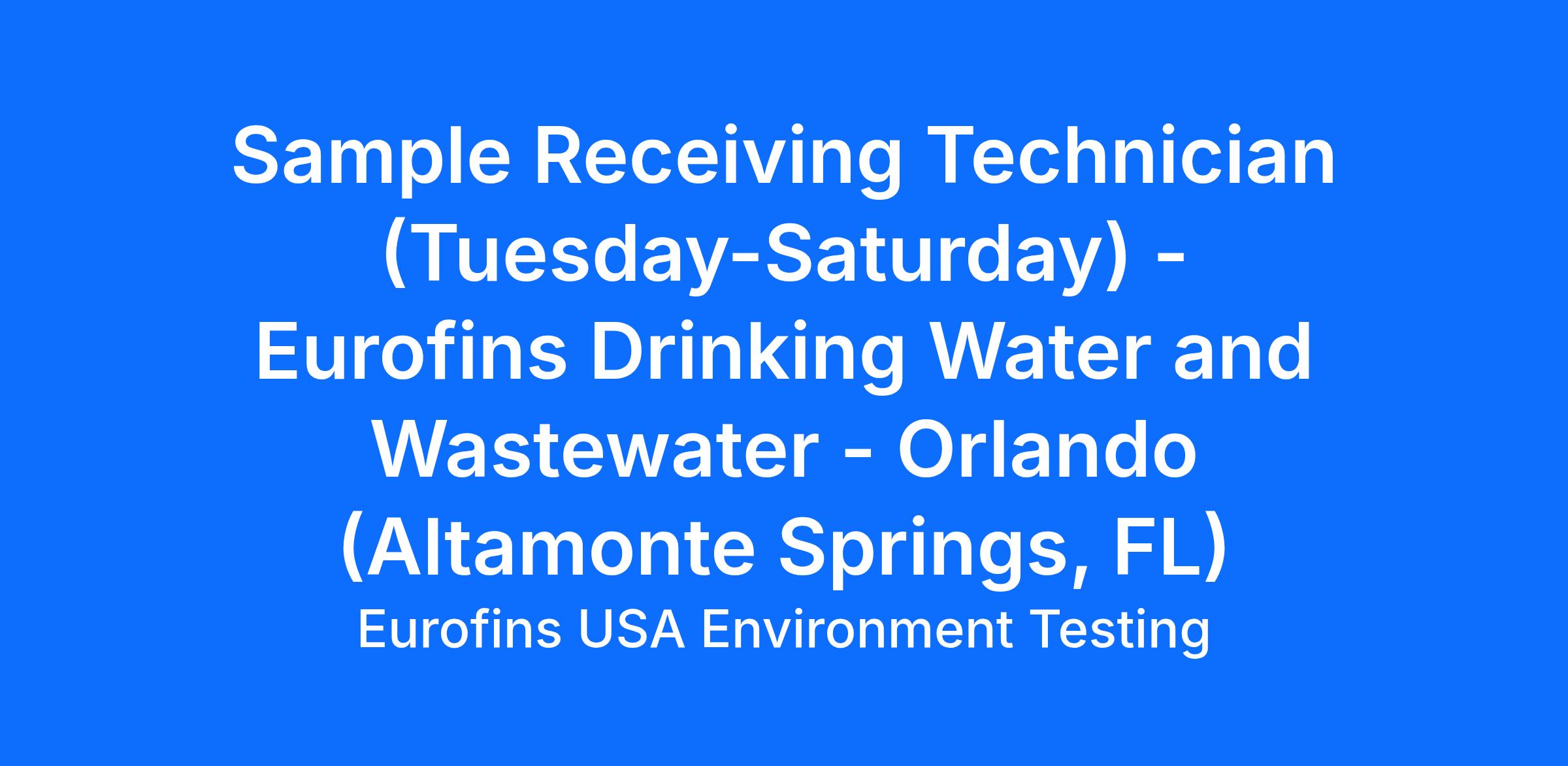 Eurofins Environment Testing is searching for a Technician in our Sample Custody Department in Altamonte Springs, FL.
