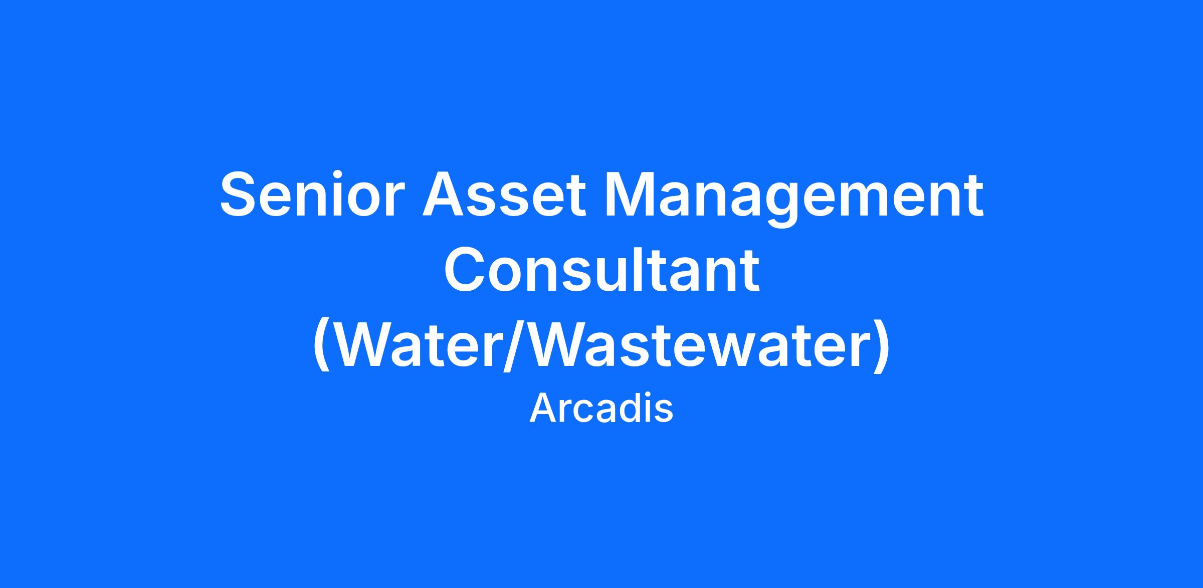 Arcadis is seeking a Senior Asset Management Consultant to join our Resilience Water Team and work on a variety of engagements with our Asset Management practice nationally. This role will be based out of our Arlington, Virginia office.