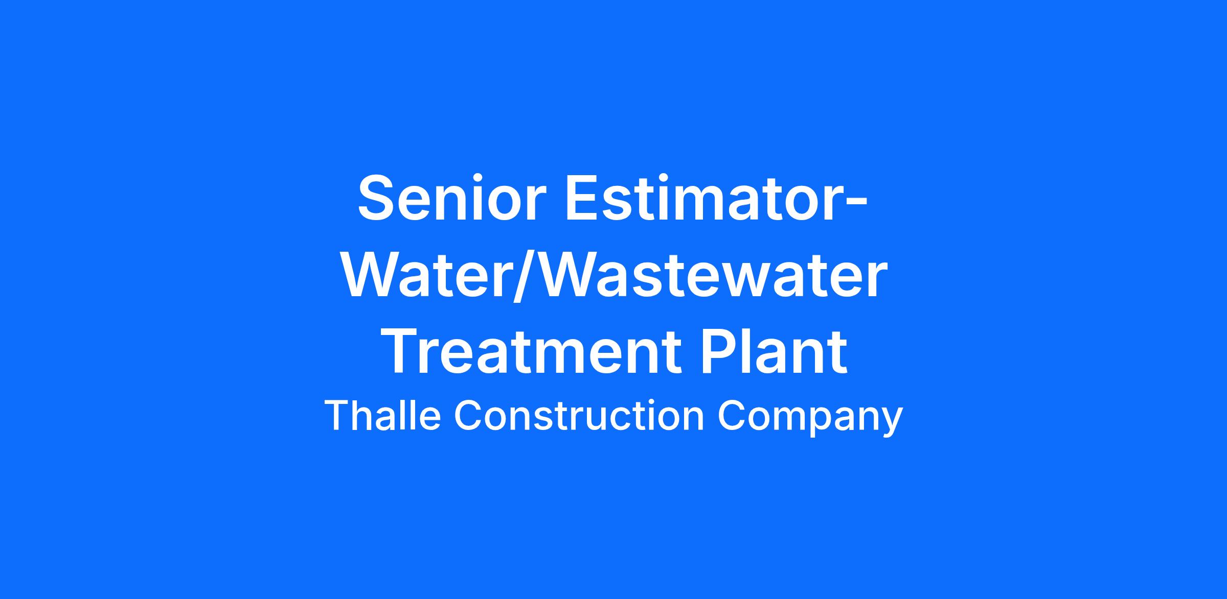 - Experience estimating for Water/Wastewater Treatment Plants.