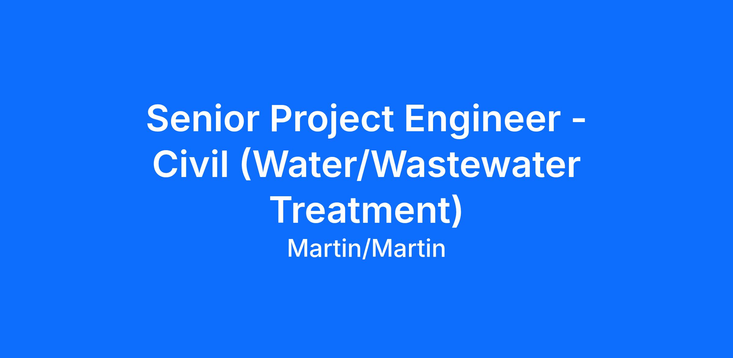 Martin/Martin, Inc. is looking for a senior project engineer/manager to join our Civil Engineering Group in our Lakewood, Colorado office This senior-level engineer will primarily be focused on water and wastewater projects, including treatment for projects located in Colorado, the Southwest, across the U.S. and in international locations.