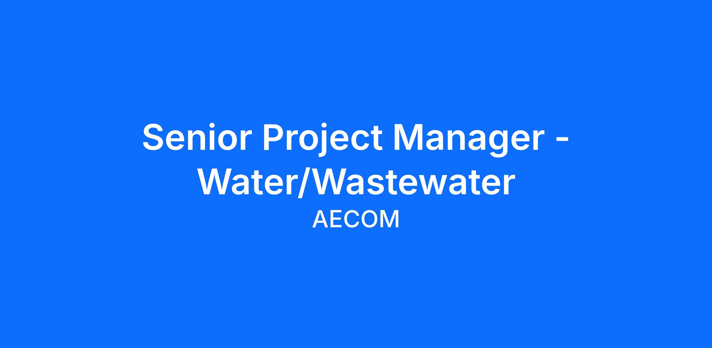 AECOM is seeking to hire a Senior Project Manager - Water/Wastewater for our growing Austin, TX office. The qualified applicant will have experience in water/wastewater engineering design and construction management principles, and will be familiar with the design, construction, and operation of municipal water and/or wastewater treatment and conveyance infrastructure.