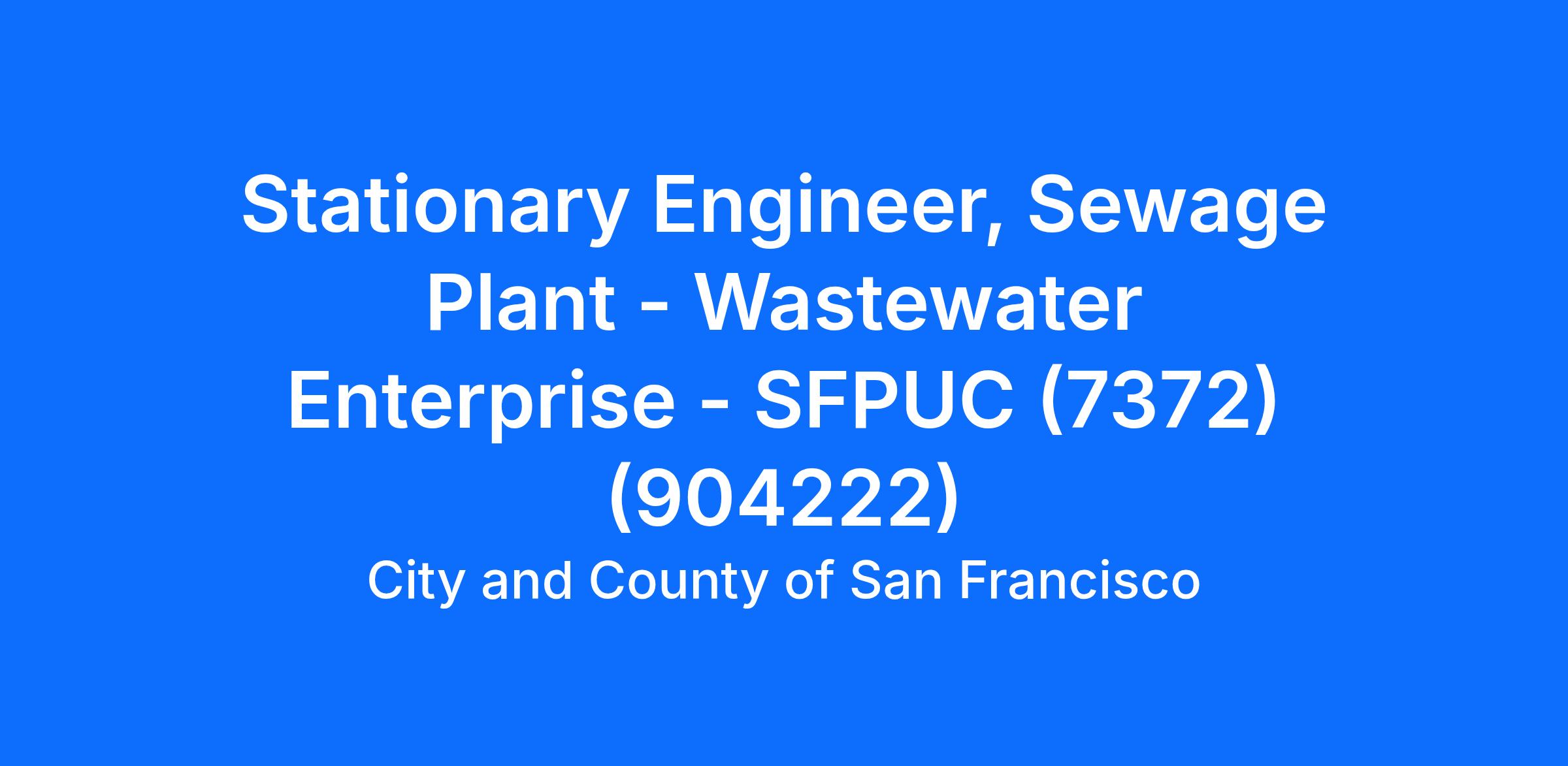 The 7372 Stationary Engineer, under general supervision during an assigned shift, is responsible for operating and maintaining a wide variety of complex machinery and equipment in a sewage disposal plant or pumping station, following established plant operations, methods and procedures; maintaining and preparing routine plant operations records and reports; and performs related duties as assigned.