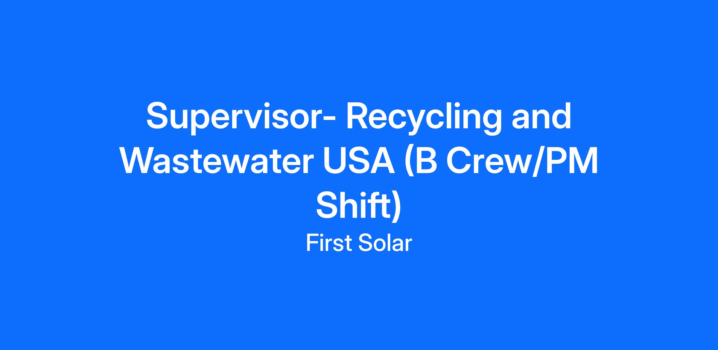 Plans and supervises the scheduling of daily work assignments of all wastewater treatment and Recycling personnel. Responsible for training and developing direct reports. Provides clear direction to hourly associates, contractors, and vendors to ensure that First Solar’s standards are being met. Responsible for communicating objectives, systems, and policies to direct reports across four shifts. Responsible for working with the appropriate departments to handle employee relations issues. This position is a frontline plant supervisor position with majority of the work time spent on the plant floor to assist technicians and to manage plant operations in a safe and compliant manner. The position is expected to collaborate with other area supervisors to meet the company goals.