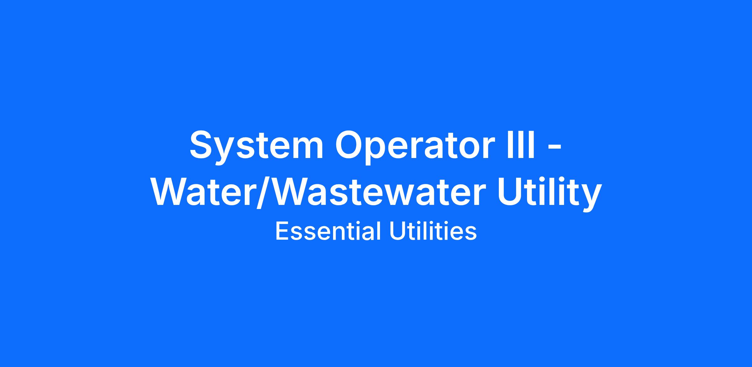 ***This is a union position. Starting wage for a System Operator III is $36.25. Employees may receive a higher starting wage if they have the applicable water/wastewater license for the job classification. All employees hired or entering the bargaining unit on or after Jan 1, 2023 will receive three dollars ($3.00) per hour less than the classification wage rate. The wage reduction will be returned in one-dollar ($1.00) increases once a year over a three (3) year period. Employees will receive annual contract increases.