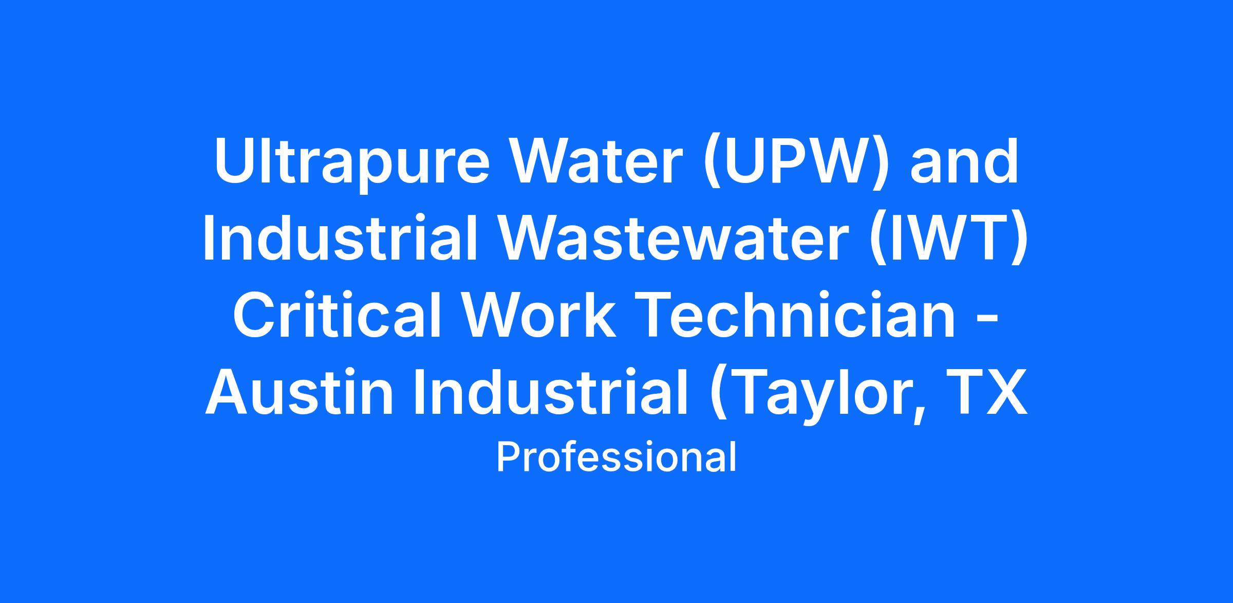 Ultrapure Water (UPW) and Industrial Wastewater (IWT) Critical Work Technician
