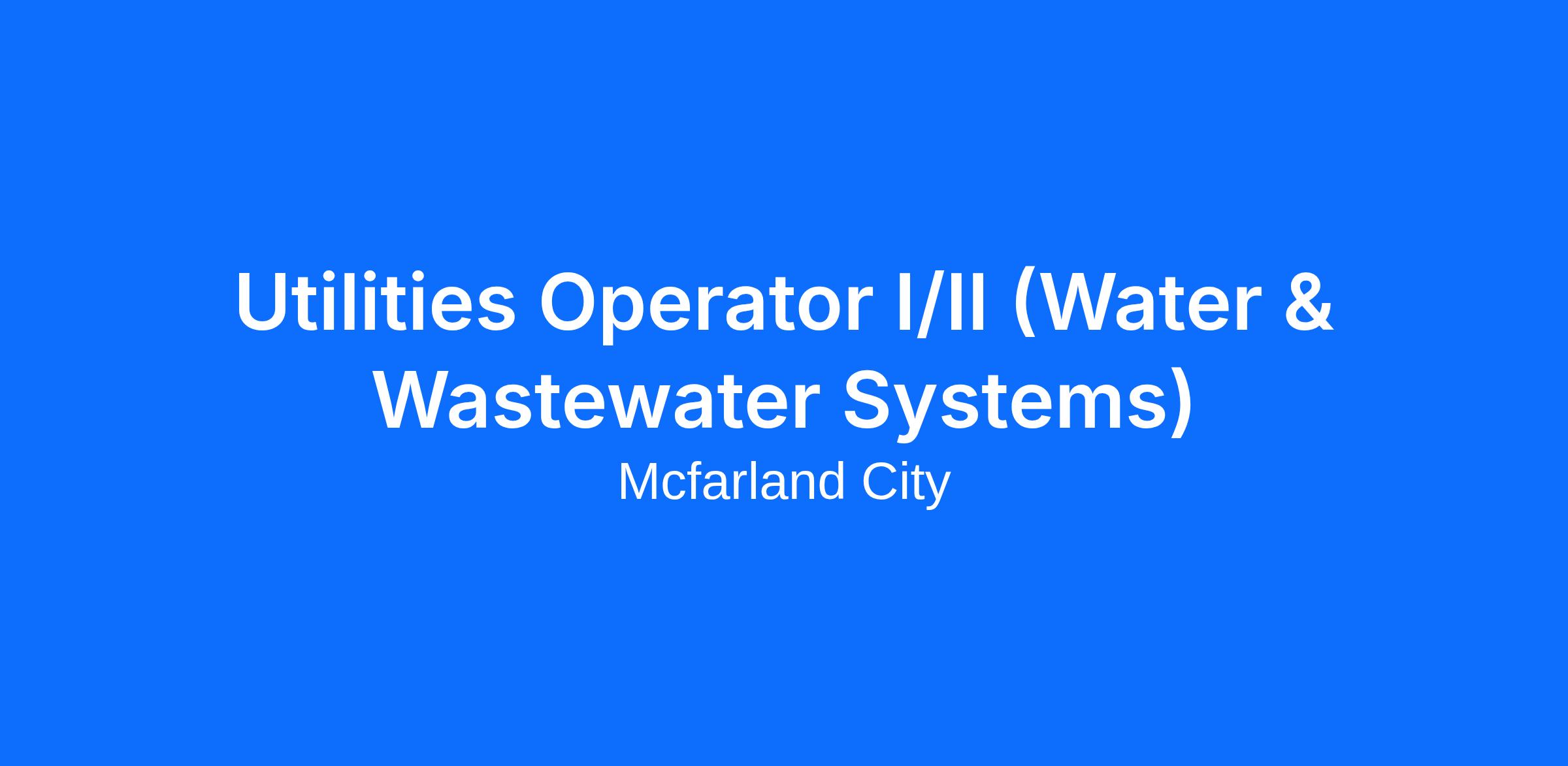 The Utilities Operator series is a progressive classification responsible for the operation, maintenance, repair, and supervision of the City’s water distribution and wastewater collection systems. This series provides a career ladder from entry-level trainees through working supervisor, with increasing responsibility, independence, technical expertise, and leadership expectations at each level.