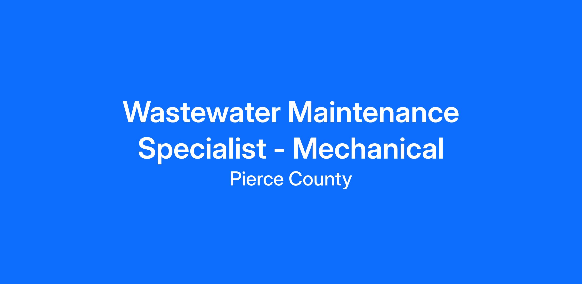 Why it's a great opportunity: As a seasoned mechanical maintenance professional, you will support the maintenance and repair of assets ranging from pumps and machinery to mechanical components for our wastewater assets. You may find yourself working in industrial facilities, confined spaces or roadway areas. Your efforts will support the Chambers Creek Wastewater Treatment Plant, the Cascadia Wastewater Treatment Plant, as well as the collections system with over 790 miles of sewer lines, 17,500 manholes, and 100 pump stations. This is a great opportunity to work with equipment, systems, and facilities that are relatively new and state of the art. Your work is essential to our customers and keeps Pierce County healthy and clean.