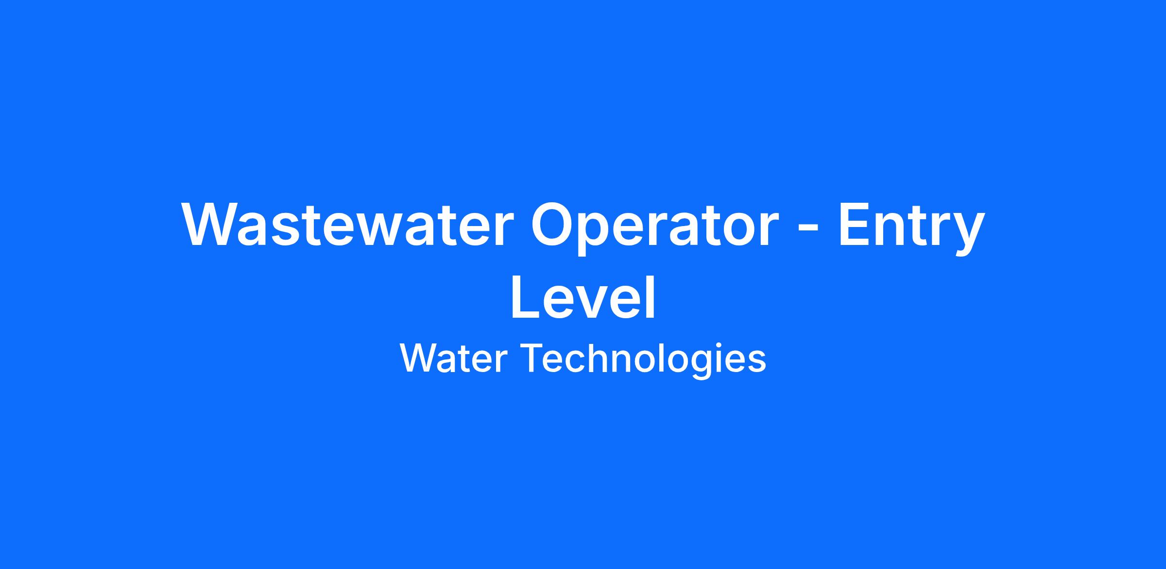 Water Tech. is currently seeking an entry level Wastewater Operator to work in the Hemlock, MI area to learn different wastewater treatment processes.