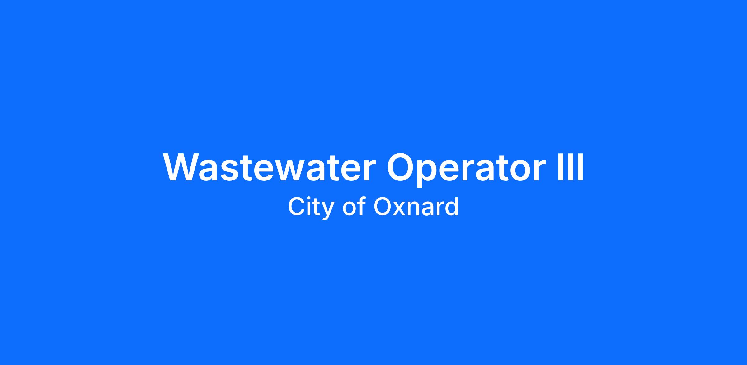 The City of Oxnard’s Wastewater Division is seeking a Wastewater Operator III to work with team members within the Operations group as well as the Maintenance, Collections, and Laboratory staff. Under general supervision, the Wastewater Operator III performs a variety of advanced journey-level duties, such as monitoring, operation, inspection, and minor maintenance and repair of wastewater treatment facilities and equipment.