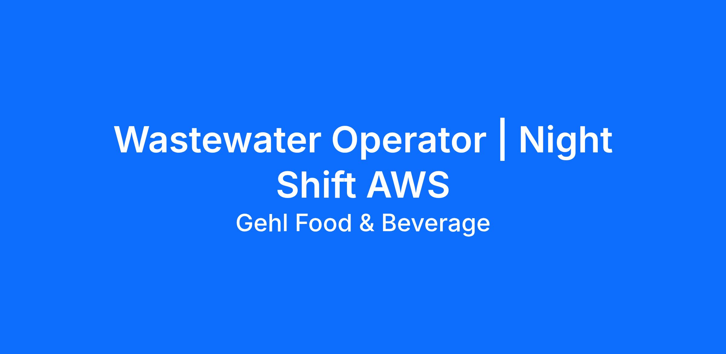 Now Hiring: Wastewater Operator | Night Shift AWS