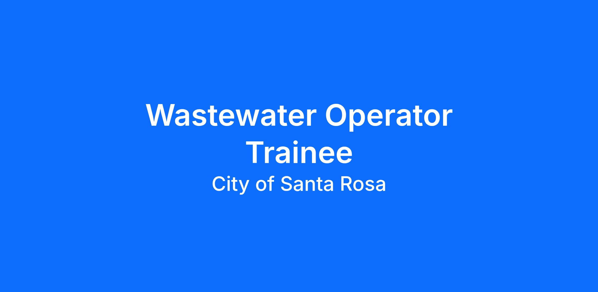 HOW TO APPLY: https://www.governmentjobs.com/careers/srcity/jobs/5162848/wastewater-operator-trainee Please complete a thoughtful, thorough Supplemental Questionnaire submission. As part of the selection process, your responses to these questions will be scored using criteria specific to this position. Incomplete responses, or responses such as "See Resume" can result in disqualification from the selection process.