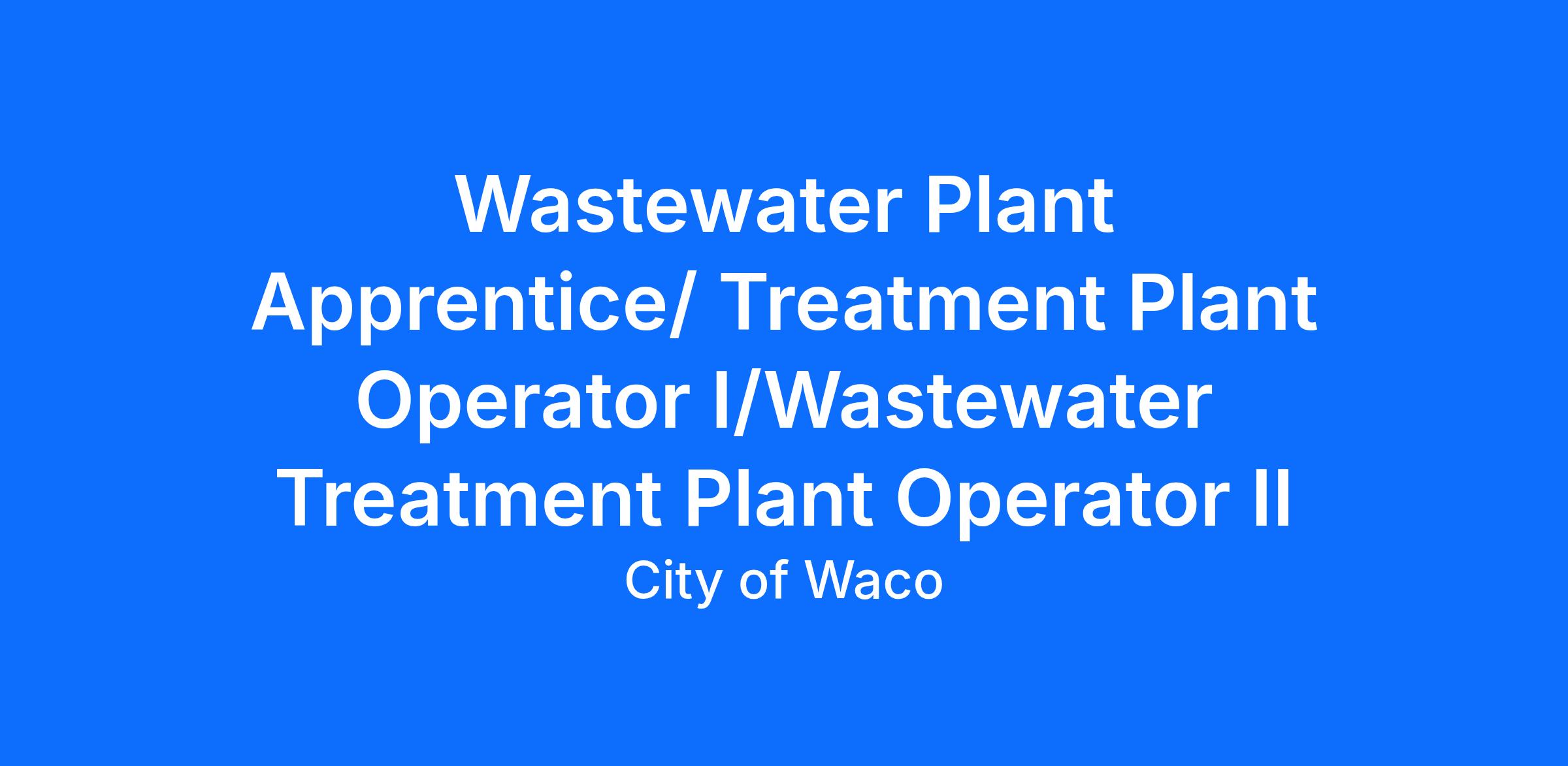 Wastewater Plant Apprentice: