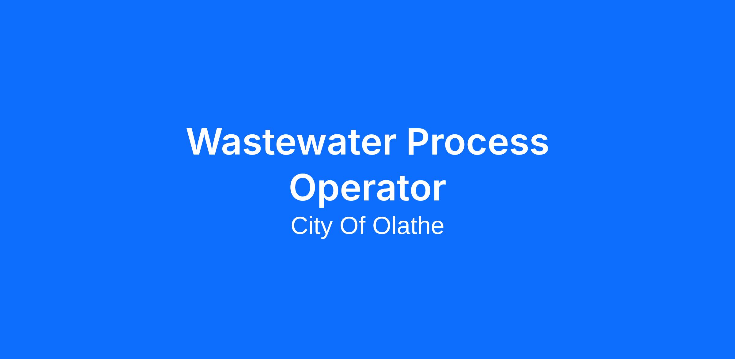 The City of Olathe is seeking a Wastewater Process Operator to join our award-winning Wastewater Treatment Facility. This group is responsible for cleaning the City’s used water from our homes and businesses – keeping our city clean and safe. We clean 6.4 million gallons of water each day at our two Olathe facilities. The water is recycled and returned as a clean resource into Cedar Creek and Mill Creek.