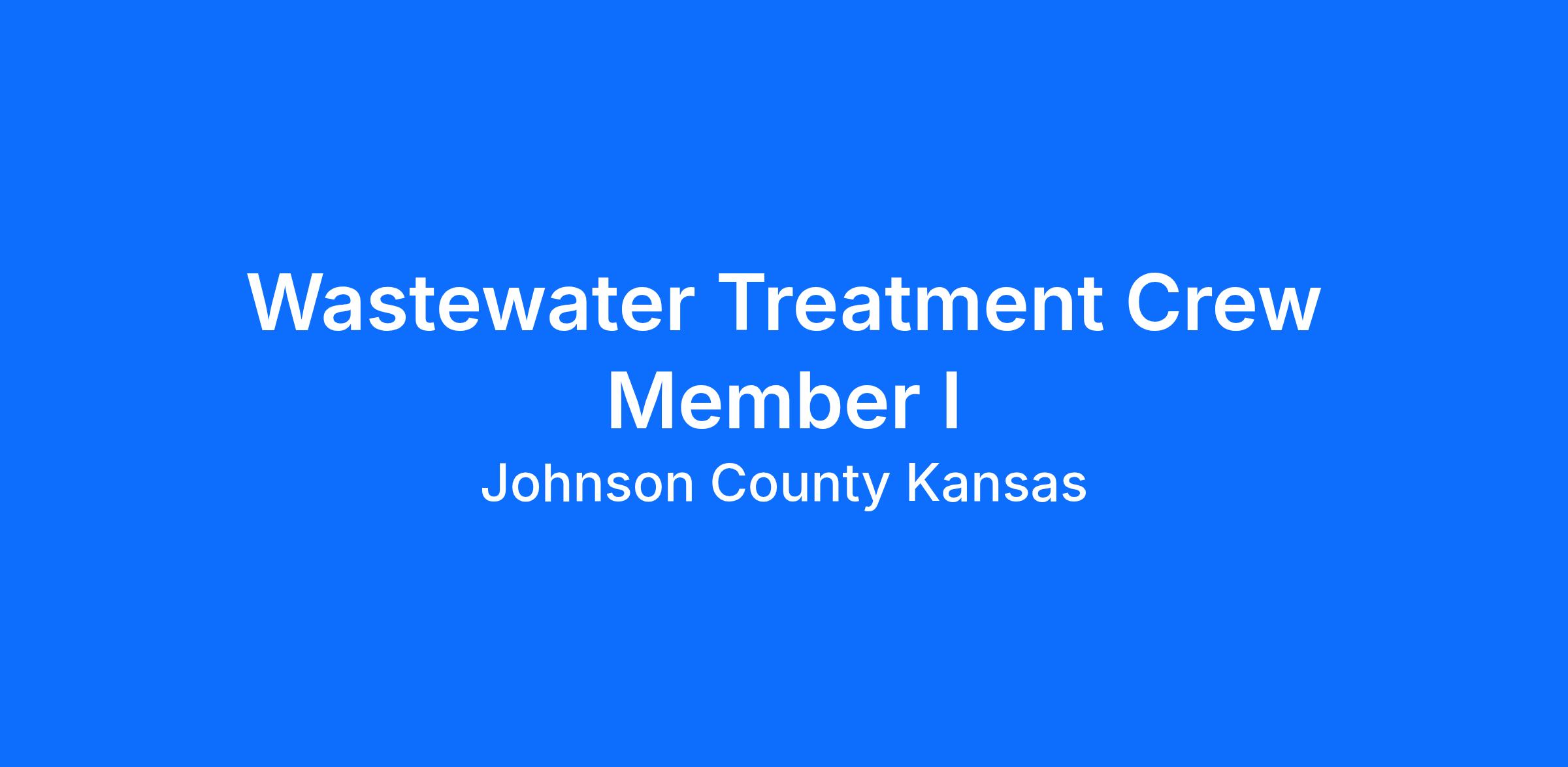 Johnson County Wastewater (JCW) is responsible for the safe collection, transportation and treatment of wastewater generated by our community. Our work ensures that our lakes, rivers, and streams remain free from disease-causing pathogens and pollutants that are harmful to public health and the environment. Johnson County Wastewater is looking for qualified candidates to fill the position of Wastewater Treatment Crew Member I . This position works in a team environment to support the operation and maintenance of a wastewater treatment facility as well as the off-site pump stations.