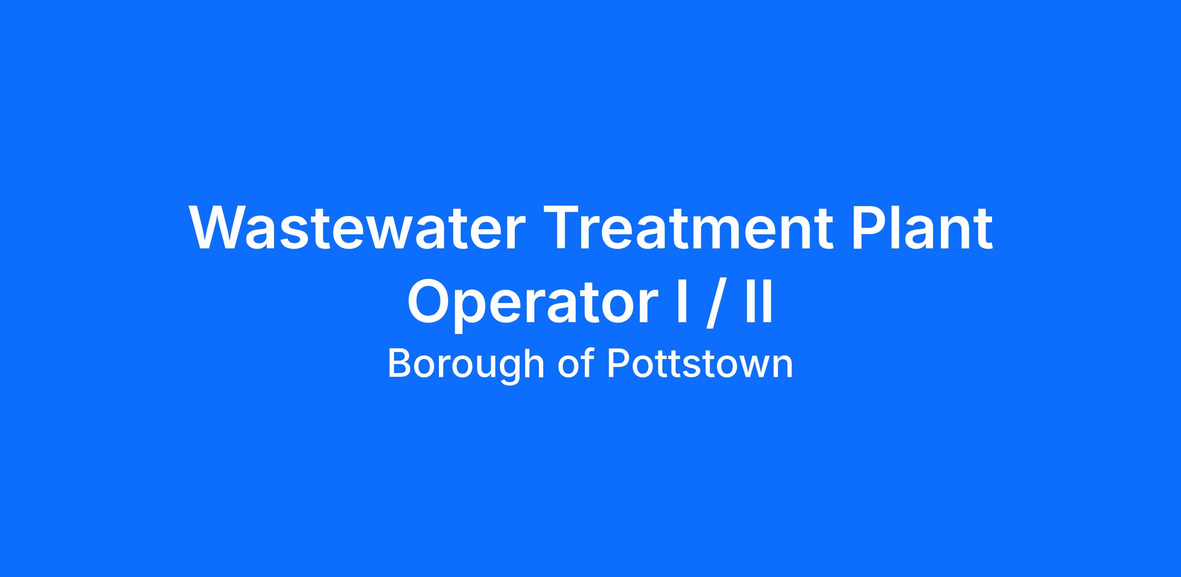 Join the Borough of Pottstown as a Wastewater Treatment Plant Operator and take pride in being part of a critical process that ensures wastewater is treated safely, effectively, and in compliance with the law. Located in Pottstown, PA, this onsite role will immerse you into municipal operations, tackling environmental challenges head-on. You’ll collaborate with an energetic and forward-thinking team dedicated to excellence in wastewater management. You will have the opportunity to operate systems and enhance the efficiency of our vital utilities. The pay for this position ranges from $27.32 to $28.53 per hour, plus a shift differential of $.75 per hour, 3:00 pm to 11:00 pm (2nd shift) on a 7 day rotating schedule.