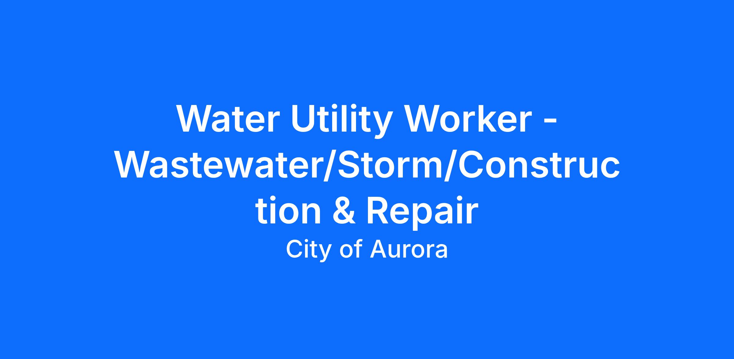 The Aurora Water Operations and Maintenance section is currently accepting applications for the following divisions: