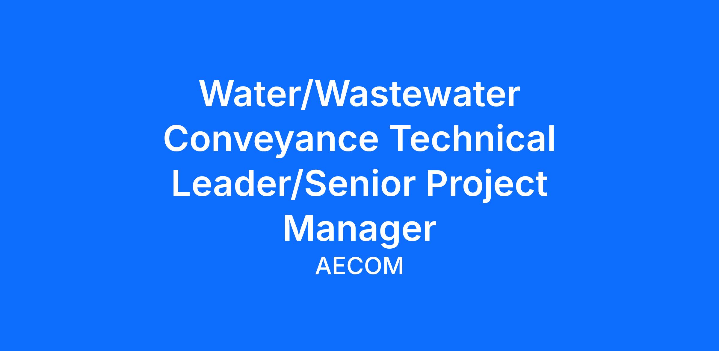 The Water Business Line of AECOM is actively seeking a creative, highly talented Water/Wastewater Conveyance Technical Leader/Senior Project Manager, with a focus on water/wastewater infrastructure design, with in-depth design engineering experience in municipal public right-of-way conveyance and pumping systems, for immediate employment in our Orange County or Los Angeles County offices.