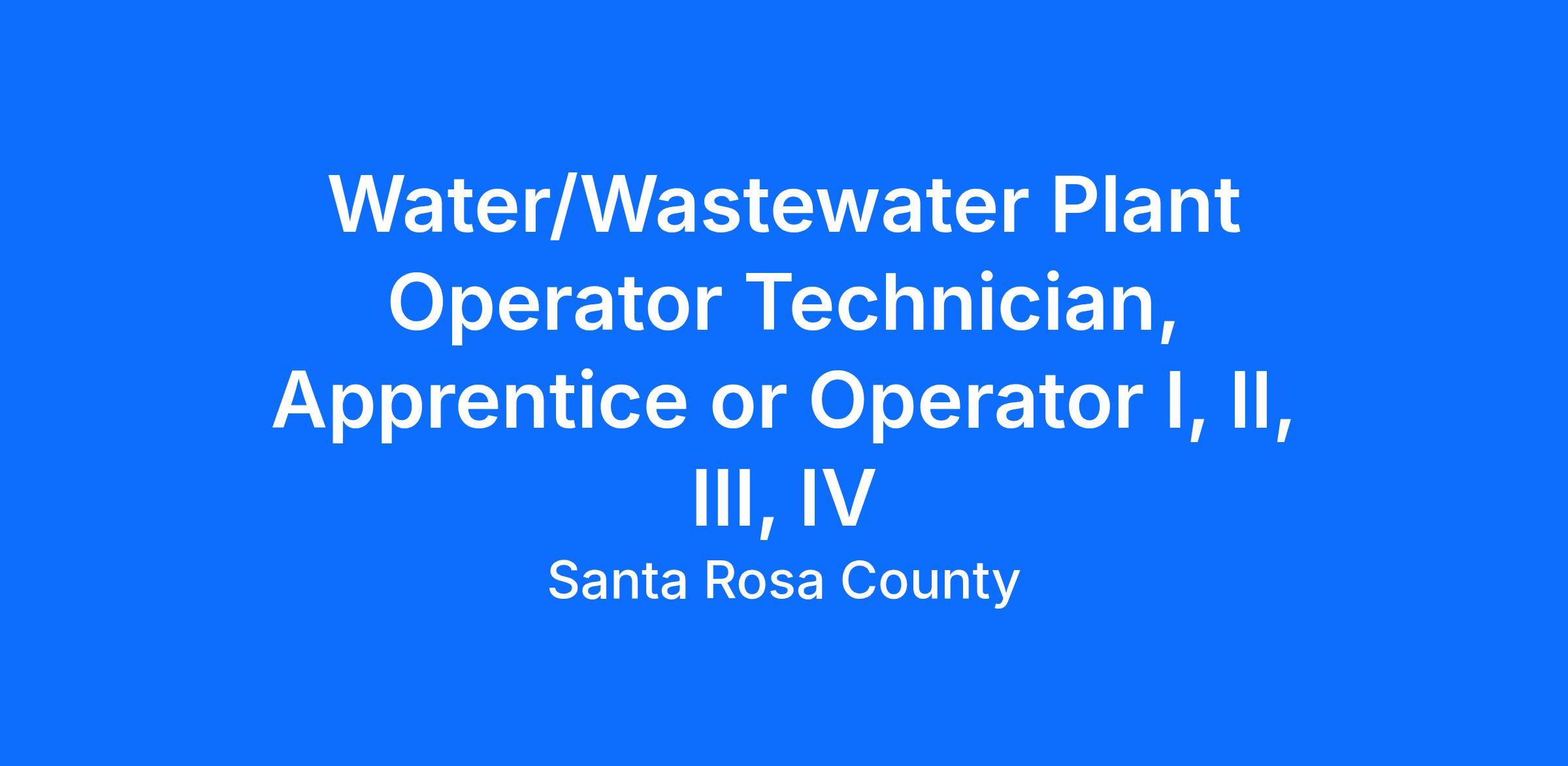 WATER/WASTEWATER PLANT OPERATOR IV (STARTING SALARY $23.93 HOURLY, DOQ)